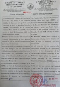 CHAMBRE DE COMMERCE D’INDUSTRIE DES MINES ET DE L’ARTISANAT DU CAMEROUN