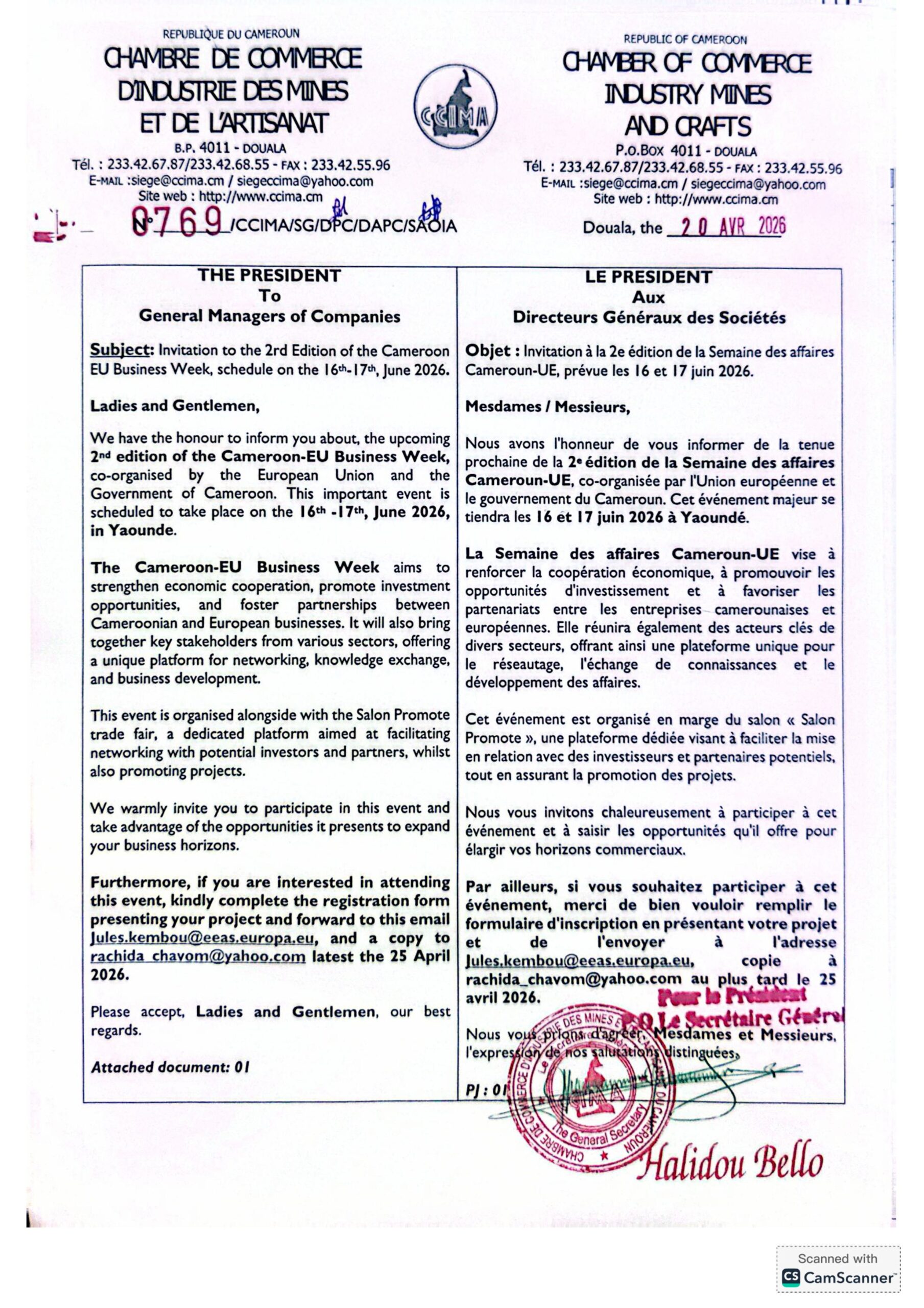 CHAMBRE DE COMMERCE D’INDUSTRIE DES MINES ET DE L’ARTISANAT DU CAMEROUN