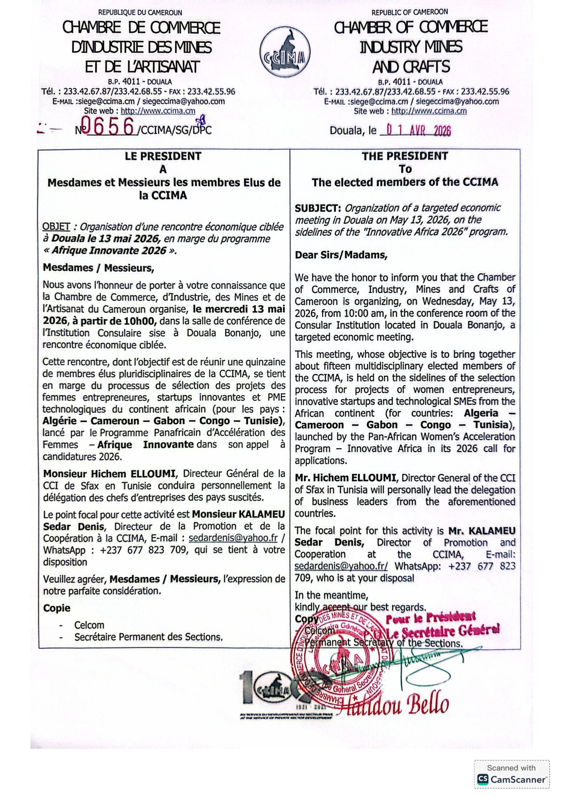 CHAMBRE DE COMMERCE D’INDUSTRIE DES MINES ET DE L’ARTISANAT DU CAMEROUN